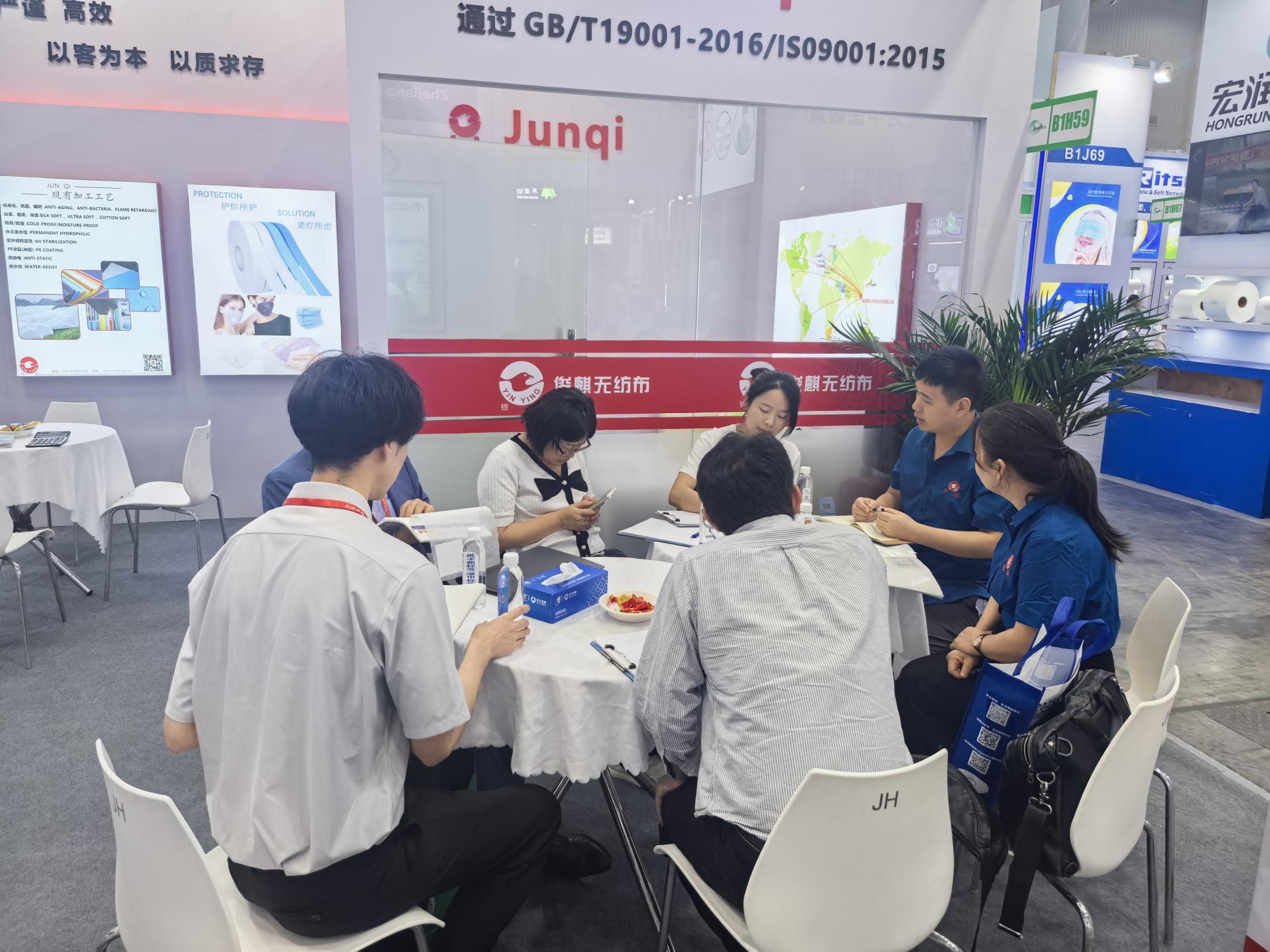 Products : Showcased the company's series of spunbond nonwoven fabric products, including materials used for sanitary napkins, diapers, wet wipes, and other disposable paper products.